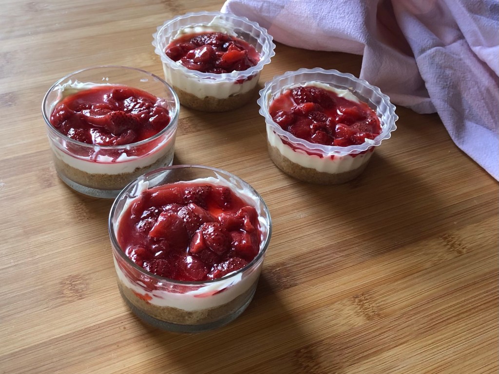 La bella stagione sembra essere arrivata perciò diamo il via alle ricette fresche,veloci ed estive. Oggi vi propongo un dessert, facile da preparare ma molto carino e goloso:cheesecake in monoporzioni alle fragola.